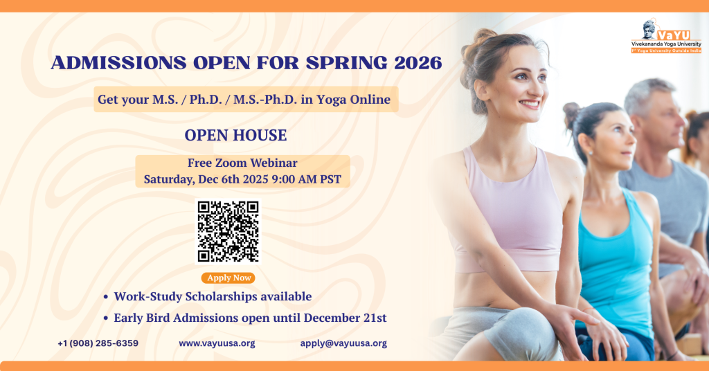 VaYU, the 1st Yoga University outside India with online M.S./Ph.D. programs welcomes you to apply for Spring 2026 with Spring semester starting January 12th 2026. VaYU has received Candidacy Accreditation for 5 years from June 2025 from WSCUC (WASC Senior College and University Commission).