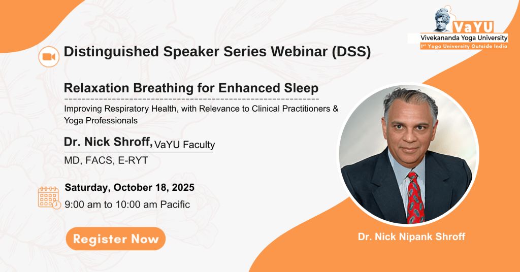 VaYU, the 1st Yoga University outside India located in Los Angeles, USA, is delighted to offer its 10th Distinguished Speaker Series Webinar of 2025 with the following exciting virtual session on Saturday, October 18, 2025 9:00AM PST